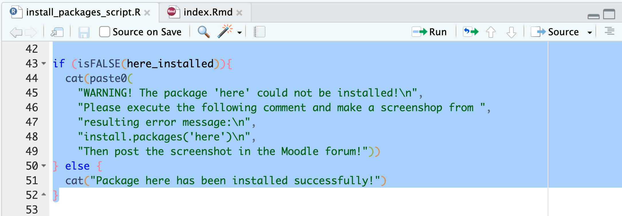 Run(the screenshot only shows the lines 42-52, the previous lines are also selected):