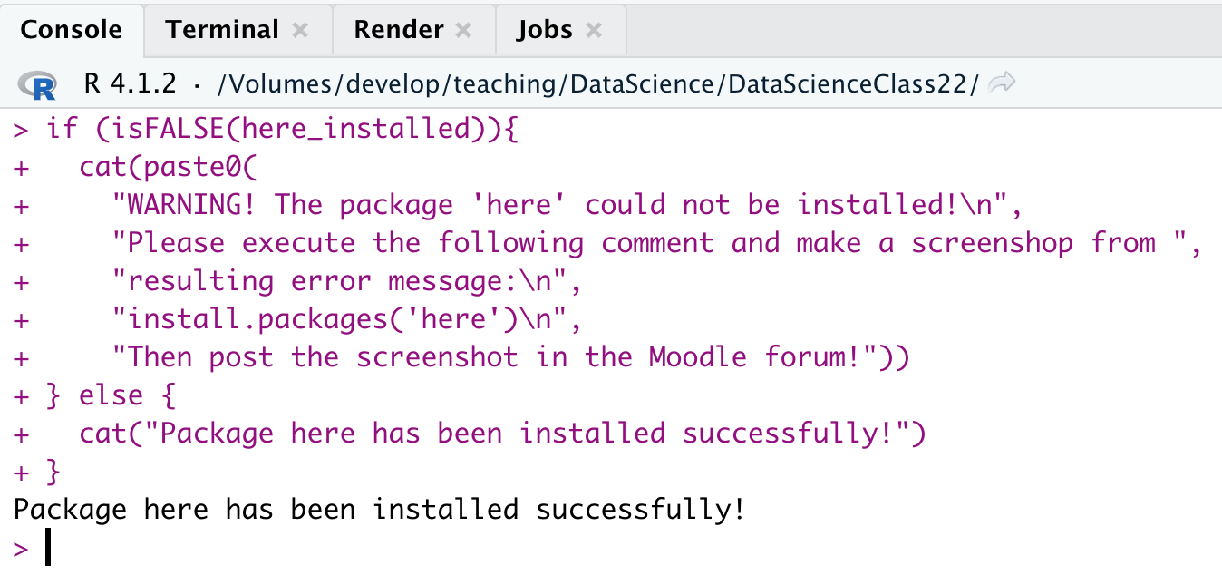 If everything worked well until here you should be able to access the exercise sheets that I provide you with after each session. To make sure everything works as expected, please run the following command in the console and press enter: